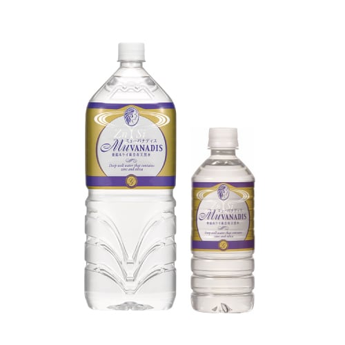 ミューバナディスは、バナジウムをはじめ、亜鉛やケイ素など約34種類のミネラルを含んだ理想的なバランスのミネラルウォーターです。
