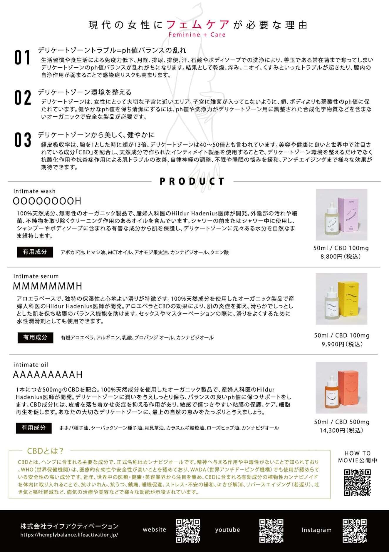 最高品質のCBDを1本につき100mg配合。100%天然成分から製造されたオーガニック洗浄オイルで、産婦人科医のHildur Hadenius医師が開発しました。デリケートゾーンの洗浄に適したオイルを含んでおり、一般的なシャンプーやボディソープに含まれる成分からデリケートゾーンをケアし、デリケートな部位の保湿をサポートします。